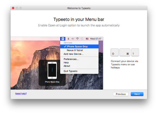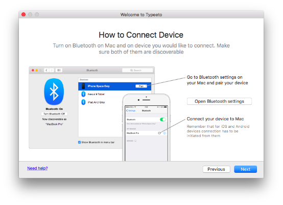 簡(jiǎn)單來(lái)說(shuō),Typeeto 就是把 Mac 電腦模擬成一個(gè)藍(lán)牙鍵盤,供任何手機(jī)和電腦等設(shè)備去連接,你不需要安裝其他軟件就能在 Mac 的鍵盤上為其他設(shè)備打字,僅需通過(guò)簡(jiǎn)單的幾步即可完成設(shè)備配對(duì)和連接,且允許你同時(shí)連接多臺(tái)設(shè)備,在你需要輸入一大串文本時(shí)可節(jié)省大量時(shí)間并提高工作效率。