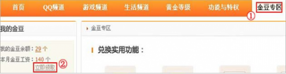 登錄超級QQ金豆專區(qū)=》點擊頁面左方“立即領(lǐng)取”即可。如圖: