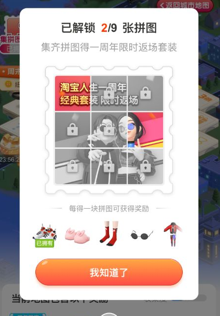 現在進入淘寶,我們可以找到一個淘寶人生集拼圖贏套裝的活動,全部集齊后,我們就可以獲得經典套裝了。具體怎么玩呢?不清楚的一起來看看吧~