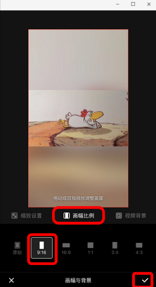 點(diǎn)擊“畫幅比例”,選擇9:16,點(diǎn)擊“對勾”。