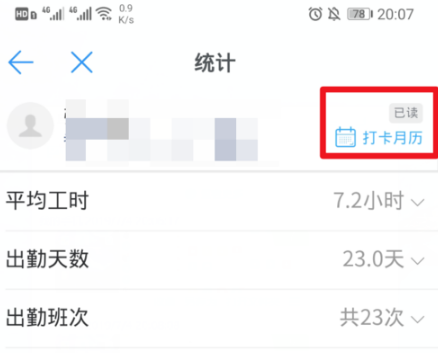 點(diǎn)擊后也可以查看考勤記錄的月匯總信息。