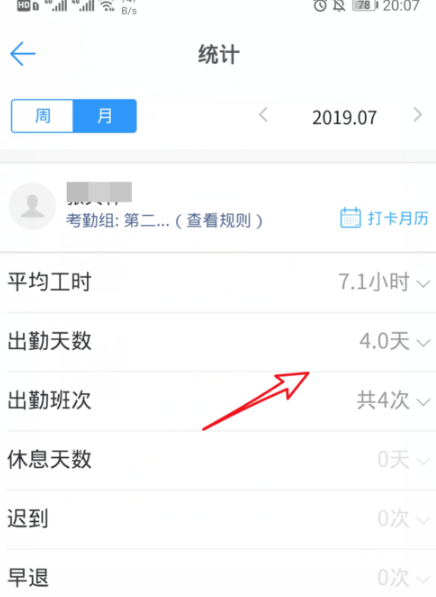 在考勤統(tǒng)計(jì)中,我們可以看到當(dāng)月的出勤天數(shù)。