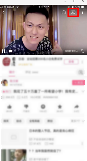 點擊視頻右上方的有“TV”標志的小圖標。