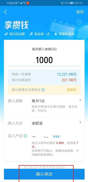 第五步進去之后,可以修改攢入金額,日期,方式等,根據需要修改計劃