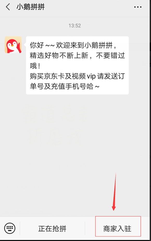 第二步:點(diǎn)擊商家入駐,會(huì)跳出提示信息。