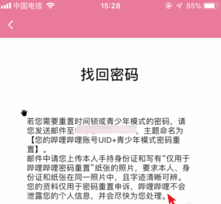 點(diǎn)擊后,進(jìn)入找回密碼界面,根據(jù)頁(yè)面的要求,發(fā)送相關(guān)的個(gè)人資料,也可以進(jìn)行重置密碼。