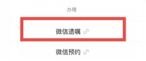 在微信里搜索并關注“中華遺囑庫”公眾號,點擊“微信遺囑”選項,點擊菜單欄【辦理】,進入【微信遺囑】。