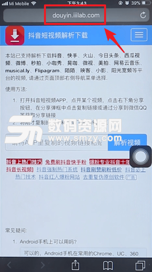 3、接著打開手機瀏覽器,輸入如下網址:http://douyin.iiilab.com/;