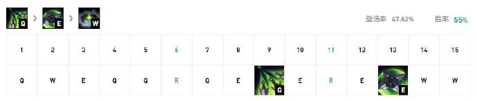 主Q副E:Q技能是阿卡麗主要的輸出技能,較短的CD時(shí)間,配合被動(dòng)傷害高且擁有不錯(cuò)的減速效果,所以建議主加。副點(diǎn)E技能可以較大程度上提升阿卡麗的機(jī)動(dòng)性和傷害。