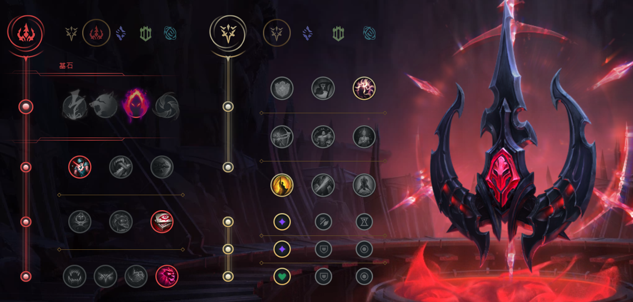 在技能加點上主Q副E技能,有R點R。死歌抓人能力并不強,所以W技能只要點一級就可以,甚至如果沒有什么抓人想法的話,在前11級可以選擇不點W技能。