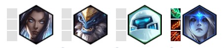 璐璐沒來之前,可以用洛和艾希組成2星神,補一手回血續航。同時燼+艾希湊2狙神、洛+皇子湊2圣盾。