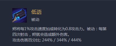 燼的技能可以將攻速轉為攻擊力,且每第四次攻擊會造成額外244%-444%傷害。后期可以輕松打出上千點傷害,瞬秒敵人: