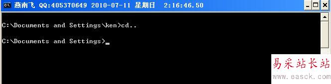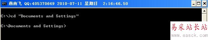 例3、如果想進入下一層目錄,在當前命令提示符下輸入cd 目錄名。在命令提示符C:/>下輸入cd “documents and setting”如下圖:
