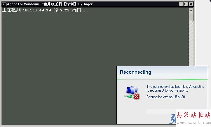于是興沖沖的封裝成exe,給IDC(server2003系統)執行,結果第一臺就悲劇了!遠程桌面直接斷開了: