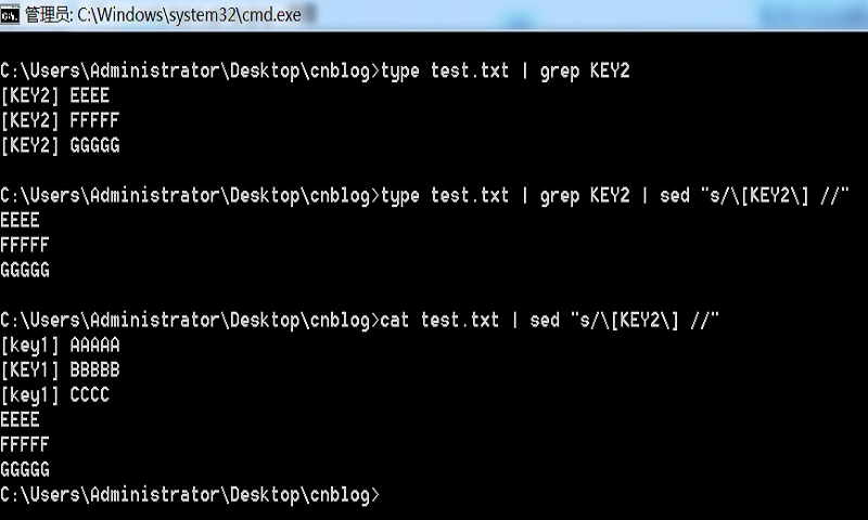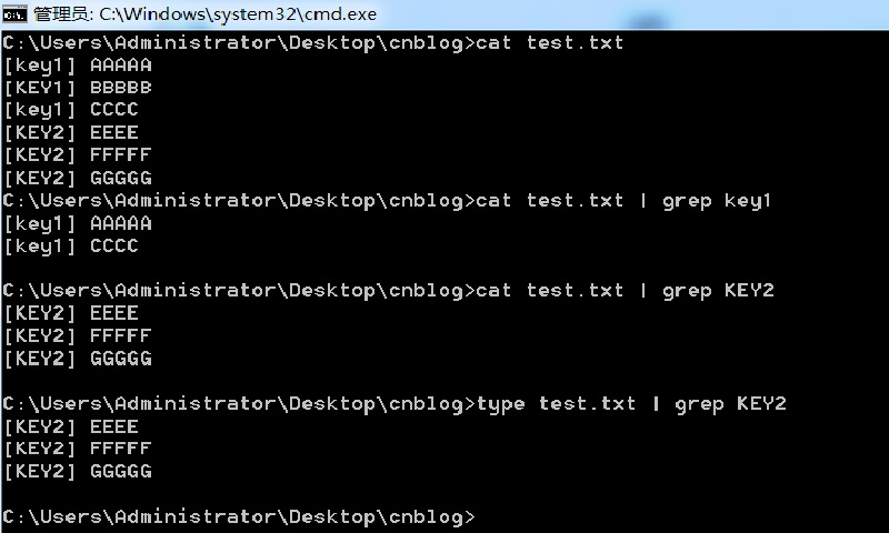 2. type/cat + grep 過濾文件內容:cat test.txt | grep KEY2 或 type test.txt | grep KEY2