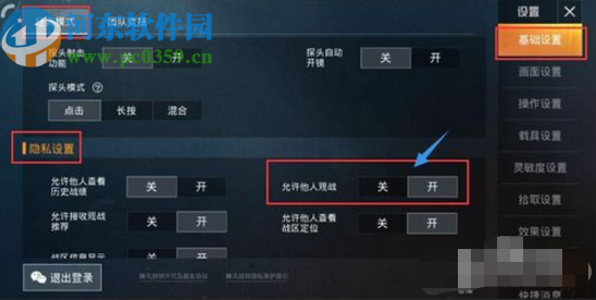 3.進(jìn)入到設(shè)置界面之后我們切換到基礎(chǔ)設(shè)置模塊,然后就可以在界面中看到“允許他人觀戰(zhàn)”這個(gè)功能了,此時(shí)功能是打開(kāi)的狀態(tài)。