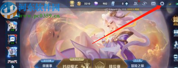 1.首先第一步我們打開手機(jī)之后進(jìn)入到王者榮耀游戲界面,然后點(diǎn)擊界面右上方的齒輪圖標(biāo),點(diǎn)擊之后進(jìn)入到游戲的設(shè)置界面。