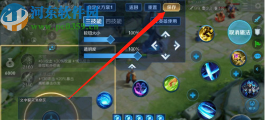 4.點擊進入到自定義布局界面我們就可以在界面中調整自己想要使用的布局了,按鈕、圖標都是可以調整透明度和大小等參數的,根據自己的需求調整之后點擊保存按鈕保存即可。