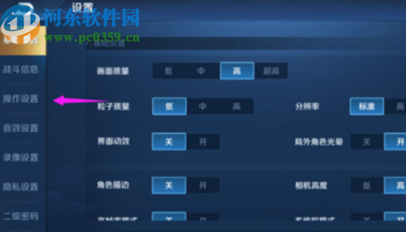 2.點擊設置圖標之后進入到游戲的設置界面,然后我們在左邊的列表中選擇切換到操作設置選項界面中。