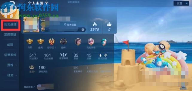 2.點(diǎn)擊個人頭像之后就進(jìn)入到自己的資料界面了,然后我們在左側(cè)列表中點(diǎn)擊歷史戰(zhàn)績這個模塊。
