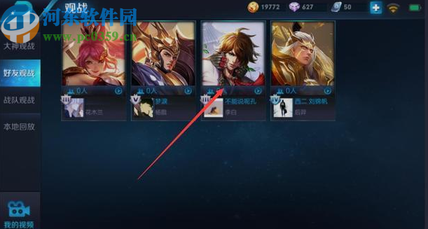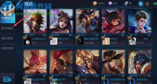 2.點擊這個播放圖標之后就會進入到觀戰功能界面,進入到觀戰功能界面之后我們左邊的好友觀戰切換到好友觀戰界面中。