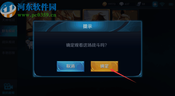 4.點擊之后游戲界面中會出現一個詢問我們是否觀看這場戰斗的窗口,然后我們點擊確定按鈕即可進入。