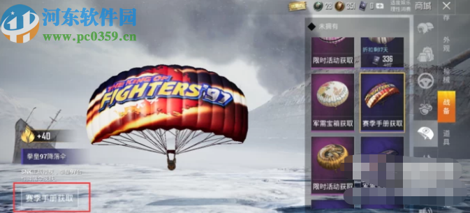 4.最后還有一種獲取降落傘皮膚的方式就是在賽季手冊中獲取,在賽季達到一定的等級時也是可以獲取的,在游戲戰備界面中可以獲得降落傘皮膚的賽季手冊等級需求。