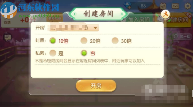 3.點擊創建房間之后會看到下圖所示的界面,可以設置該房間的封頂倍數、名稱和是否影藏等信息,設置完成之后點擊開房按鈕。