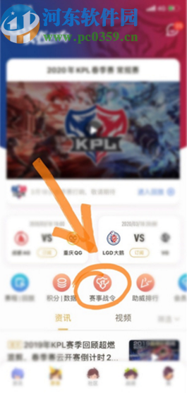 4.另外還有一種進入查看戰令的方法就是在王者營地的首頁找到首頁底部的賽事戰令功能圖標,點擊即可查看當前角色的賽事戰令信息。