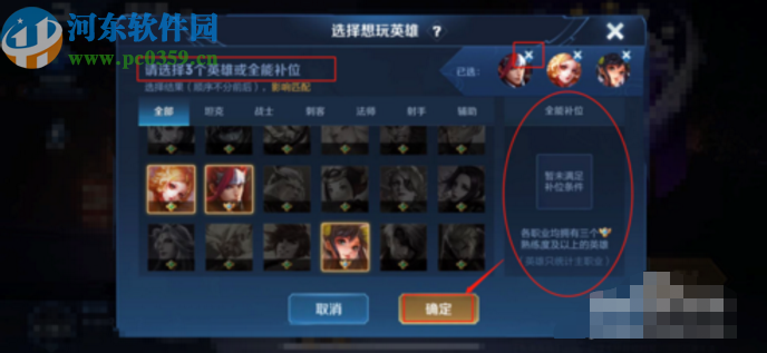 3.進(jìn)入到設(shè)置想玩英雄的界面之后我們點擊原有的英雄頭像右上角的叉可以取消選擇這個英雄,然后我們根據(jù)自己的具體情況選擇想用英雄即可。