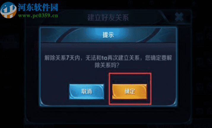 4.點擊紅叉之后會彈出一個詢問我們是否確定解除關系的窗口,我們點擊這個窗口中的確定按鈕即可解除戀人關系。