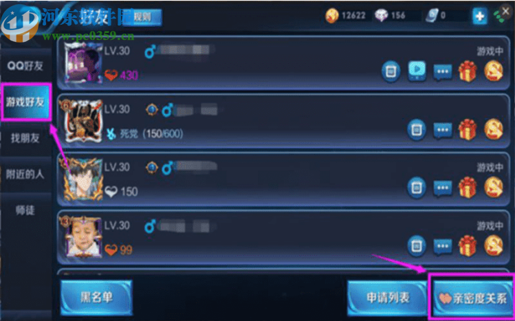 2.進入到好友功能界面之后,我們切換到游戲好友模塊中,然后點擊右下角的親密度關系這個按鈕。