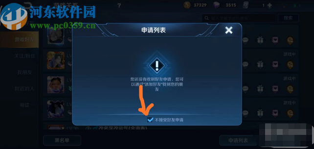 3.點(diǎn)擊申請(qǐng)列表按鈕之后我們將會(huì)看到下圖所示的界面,在這個(gè)界面中勾選不接受好友申請(qǐng)這個(gè)功能選項(xiàng),這樣別人就不能加自己為好友了,我們也不會(huì)收到加好友的申請(qǐng)。