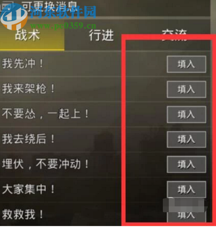 5.點擊更換之后我們就可以看到一些可以更換的后選項了,點擊這些選項后面的填入按鈕即可將這條快捷消息選擇到局內消息界面中,最后設置完成點擊確定按鈕保存即可。