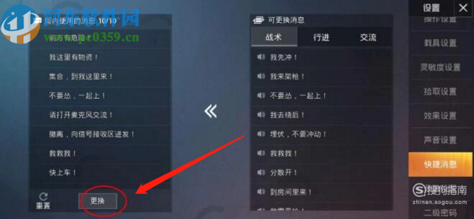 4.另外我們點擊左邊局內消息界面的更換按鈕,可以對已經選擇的局內消息進行更換,如下圖中所示。