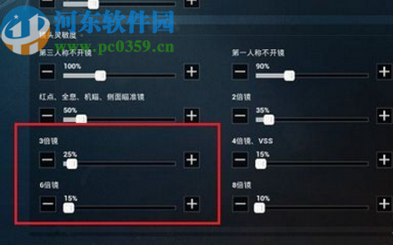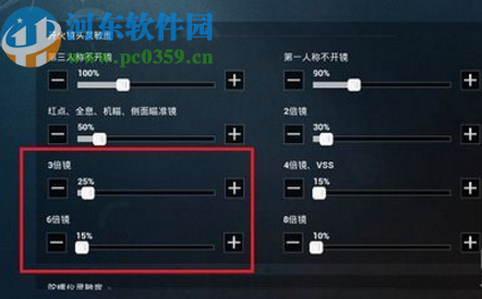 3.接下來(lái)是開火鏡頭的靈敏度設(shè)置,在其中3倍鏡的靈敏度需要調(diào)節(jié)到25%,6倍鏡的靈敏度設(shè)置為15%,與鏡頭靈敏度的一樣。
