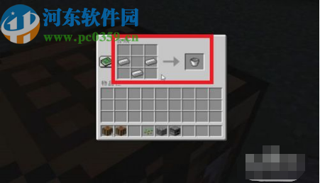 4.最后我們煉制完3塊鐵錠之后將鐵錠放入到工作臺當中,擺放位置如下圖中所示。等到他們合成以后我們就可以獲得一個水桶了。