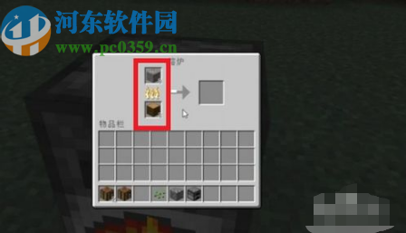 2.熔爐制作完成之后我們打開熔爐,將鐵礦石放在上方,然后在鐵礦石的下方放上木料或者是木炭進行煉制。