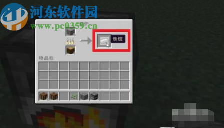3.等到煉制完成之后我們就獲得一個鐵錠了,如下圖中所示。然后我們需要使用同樣的方法再煉制出一些鐵錠以備使用。