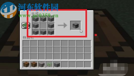 1.首先第一步我們使用工作臺,放入8個石塊,如下圖中所示。擺放一圈之后可以制作出一個熔爐,然后我們就需要制作一個這樣的熔爐。