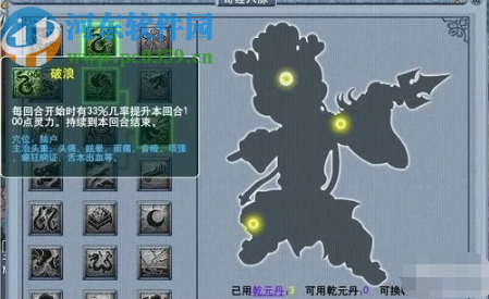 2.在龍宮的經脈當中只有前面三個是增加法術傷害的,第一個我們可以選擇破浪,這樣在每個回合開始的時候都有一定的幾率增加100靈力。