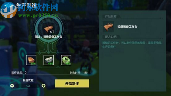4.最后就是開始合成的操作界面了,我們收集好需要的材料配方之后,在合成界面中將材料都放置到合成臺中,點擊開始制作按鈕就可以進行合成了。