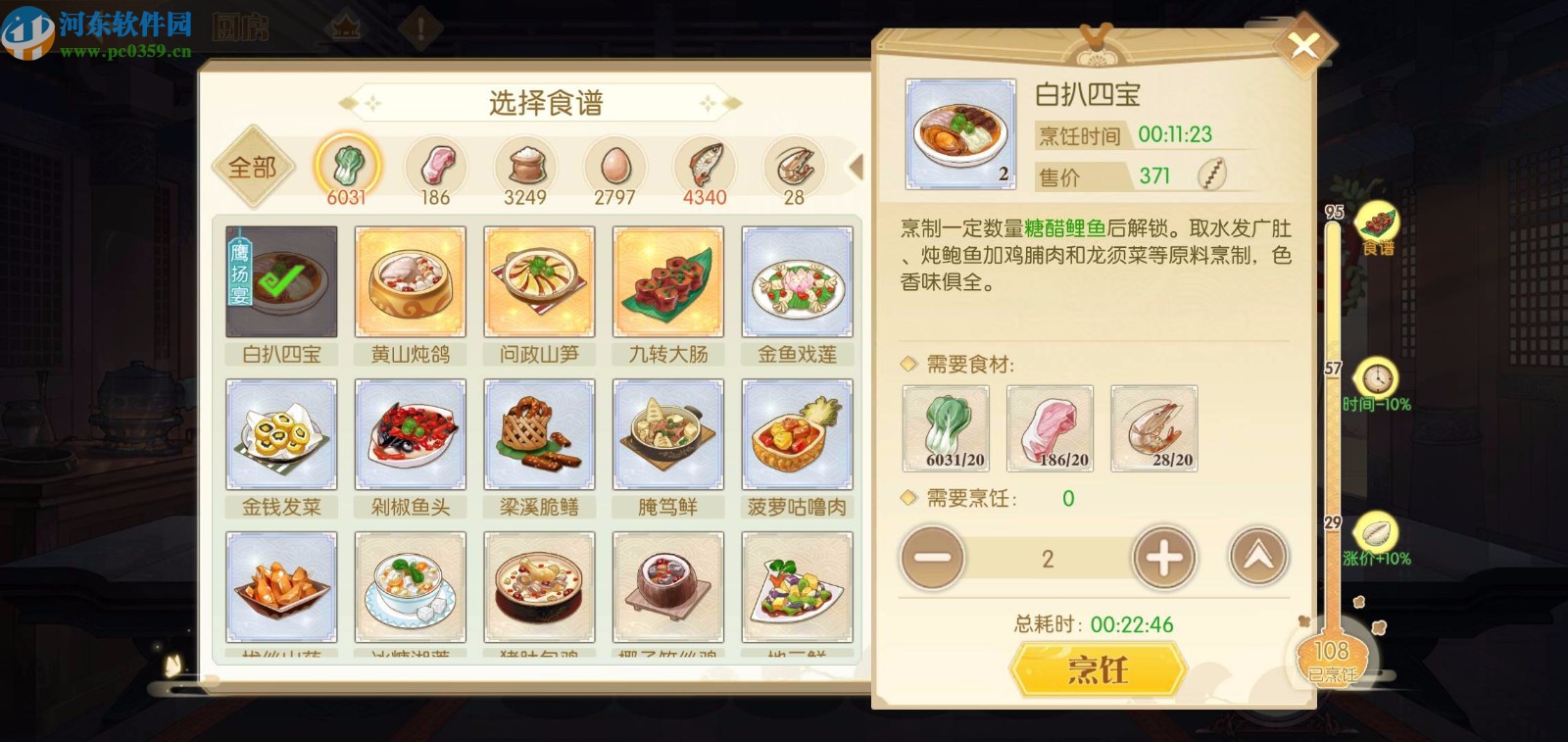 3.還有一個方面就是在食譜上,游戲中會有不同的宴會或者是廟會,到時候需要的食譜也是不一樣的,要注重區別兩種餐桌的食譜。