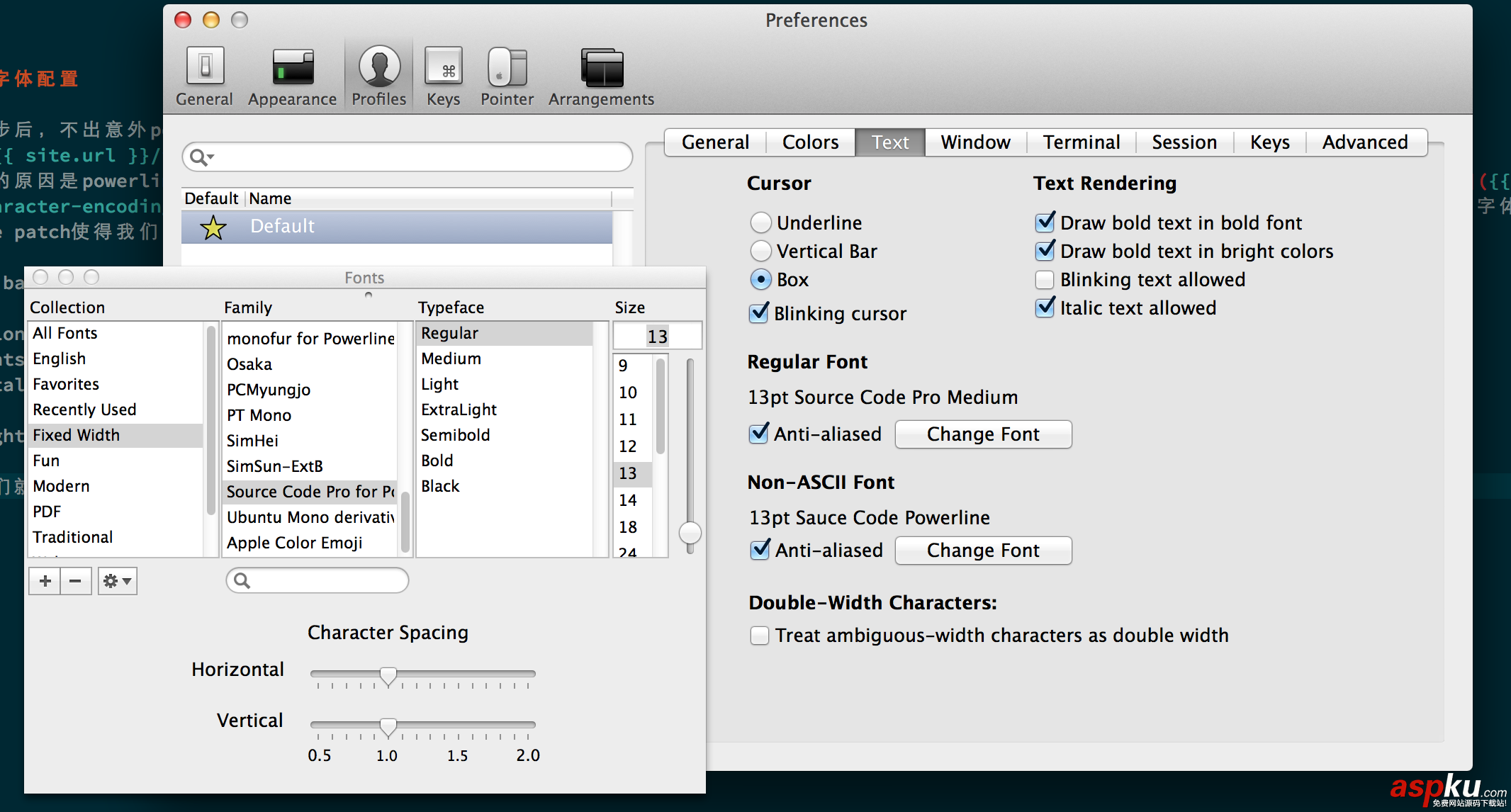 安裝完成后我們就可以在iTerm2或者Terminal的字體選項里看到并選擇多個xxx for powerline的字體了。*注意:對于ASCII fonts和non-ASCII fonts都需要選擇for powerline的字體。如下圖: