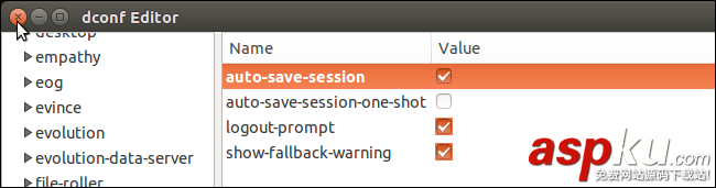 接著在 “gnome” 下點擊 “gnome-session”。在右邊窗格里,選擇 “auto-save-session” 選項框并將它開啟。