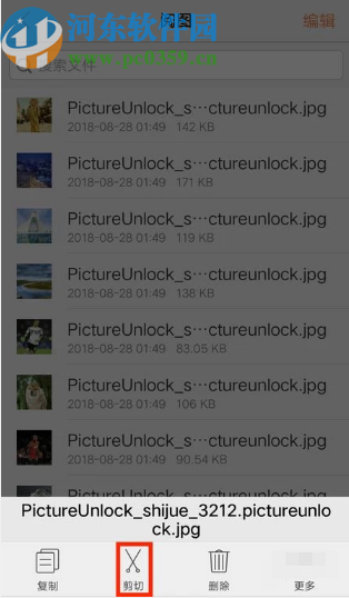 3.進入到手機儲存界面之后我們就可以找到要進行移動操作的文件了,小編用下圖中的圖片給大家做演示,選中圖片之后長按它,緊接著在界面下方出現的操作選項中選擇剪切這個功能。