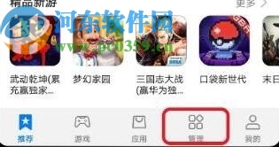 2.進(jìn)入到手機(jī)的應(yīng)用市場界面之后,下一步是需要找到界面下方功能選項(xiàng)菜單中的管理這個(gè)功能選項(xiàng),找到之后點(diǎn)擊進(jìn)去。