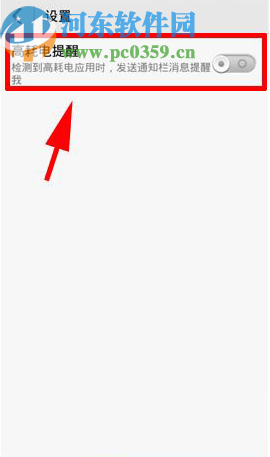 4.最后進(jìn)入到設(shè)置界面之后我們就可以看到高耗電提醒這個(gè)功能選項(xiàng)了,然后我們點(diǎn)擊他后面的開關(guān)將它關(guān)閉即可。