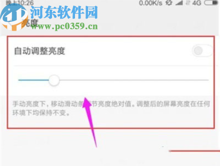 4.最后一步就是進入到亮度顯示的界面了,然后我們需要滑動界面中的小圓點來調(diào)整手機屏幕顯示的亮度就可以了。