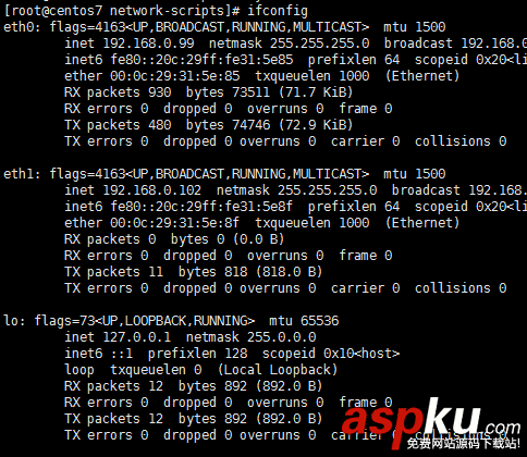 希望把網卡名改為跟6一樣的eth0,eth1,執行以下操作